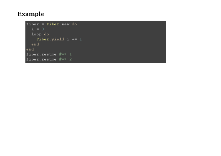 end fiber.resume #=> 1 fiber.resume #=> 2