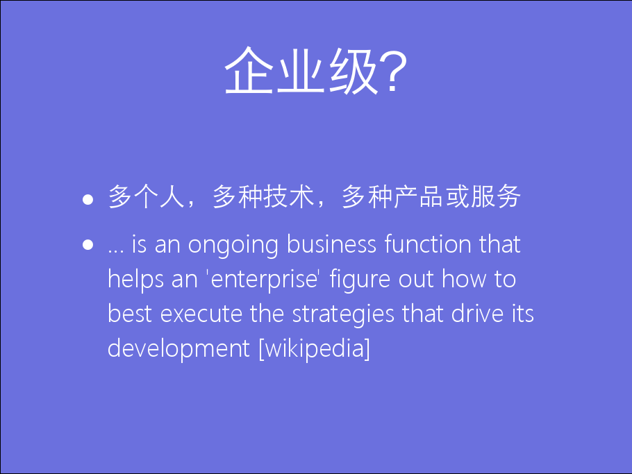 • 多个⼈人,多种技术,多种产品或服务 • ... is an ongoing business function that