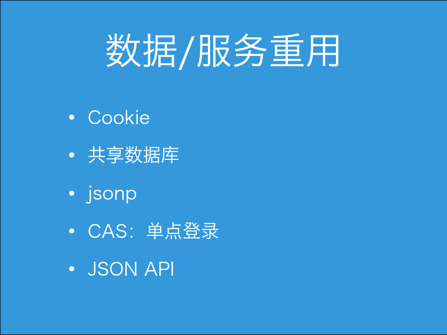 ·Cookie ·共享数据库 ·jsonp ·CAS:单点登录 ·JSON API