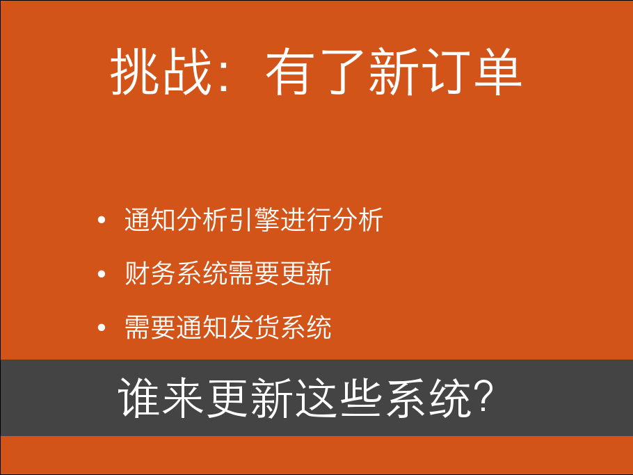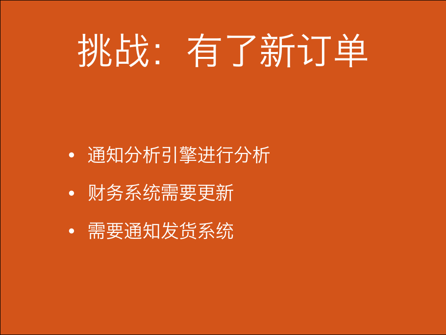 ·通知分析引擎进行分析 ·财务系统需要更新 ·需要通知发货系统