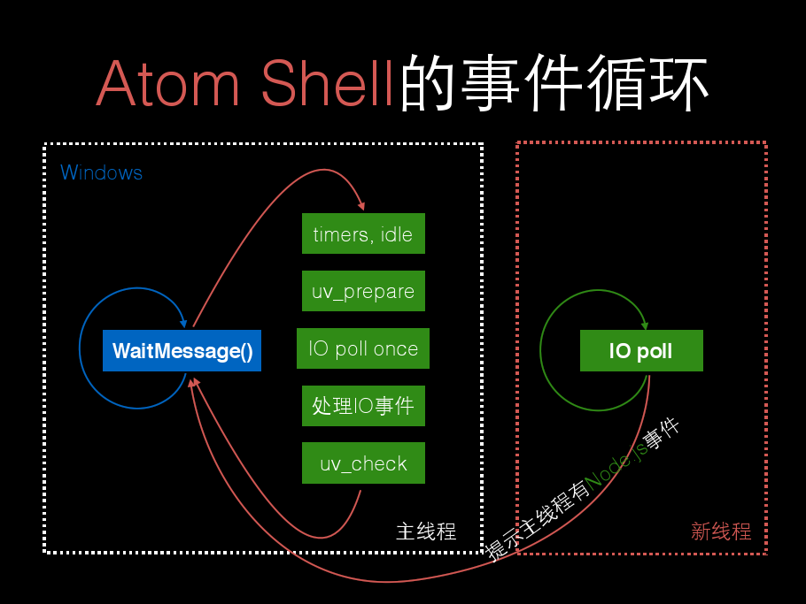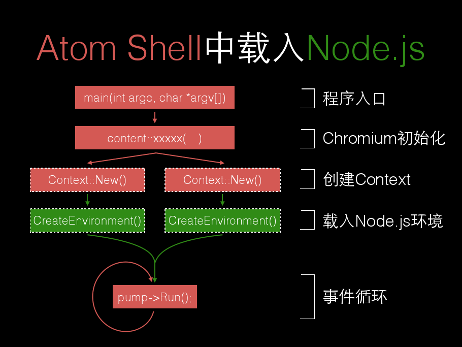 Node.js引擎是如何 嵌⼊入到Atom Shell中的?