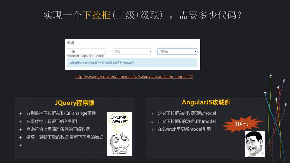 实现一个下拉框(三级+级联) ,需要多少代码?