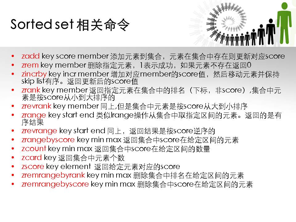 这个需求与上面需求的不同之处在于,前面操作以时间为权重,这个是以某个条件为权重,比如按顶的次数排序,这时候就需要我们的sorted set出马了,将你要排序的值设置成sorted set的score,将具体的数据设置成相应的value,每次只需要执行一条ZADD命令即可。