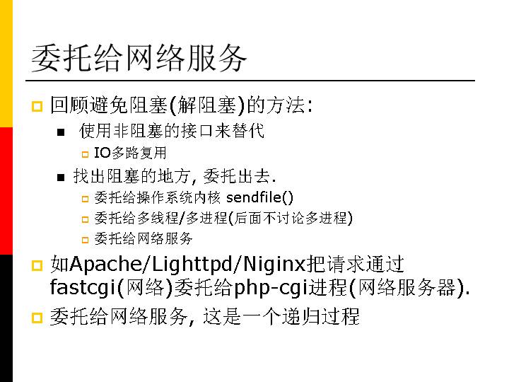 如Apache/Lighttpd/Niginx把请求通过fastcgi(网络)委托给php-cgi进程(网络服务器).