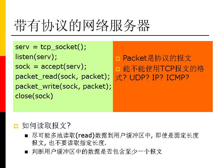 尽可能多地读取(read)数据到用户缓冲区中, 即使是固定长度报文, 也不要读取指定长度.
