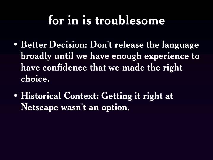 Better Decision: Don't release the language broadly until we have enough experience to have confidence that we made the right choice.