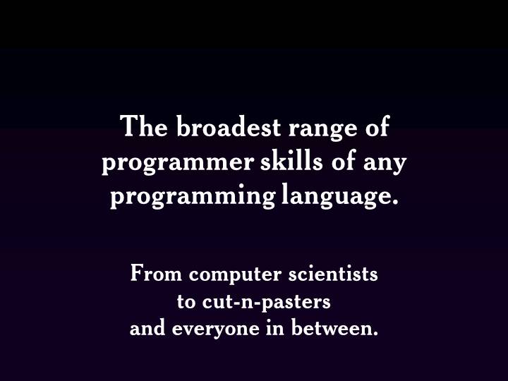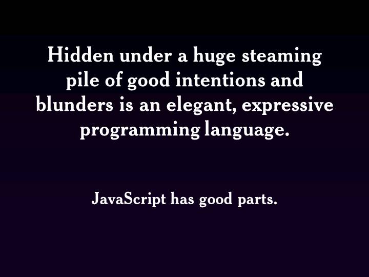 Hidden under a huge steaming pile of good intentions and blunders is an elegant, expressive programming language.