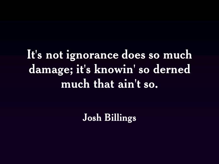 It's not ignorance does so much damage; it's knowin' so derned much that ain't so.