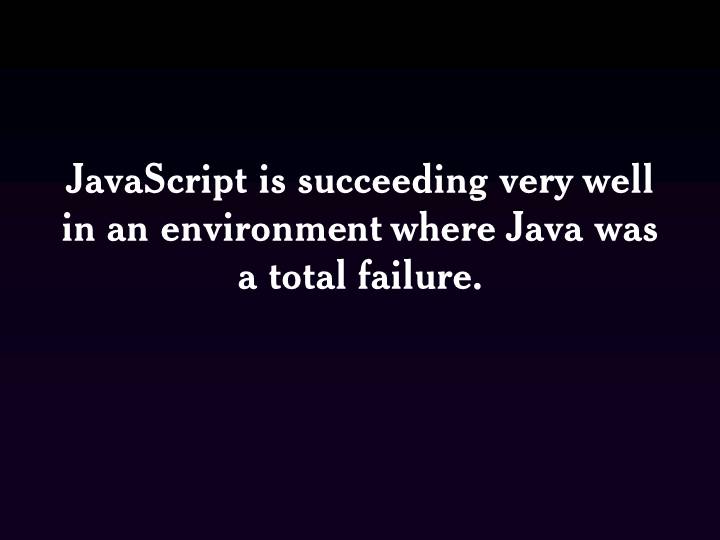 JavaScript is succeeding very well in an environment where Java was a total failure.