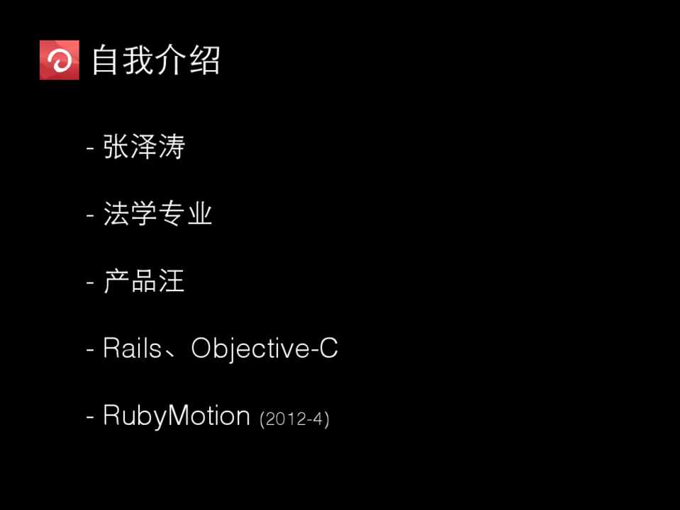 - 张泽涛 - 法学专业 - 产品汪 - Rails、Objective-C - RubyMotion (2012-4)