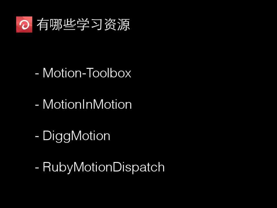 - Motion-Toolbox - MotionInMotion - DiggMotion - RubyMotionDispatch