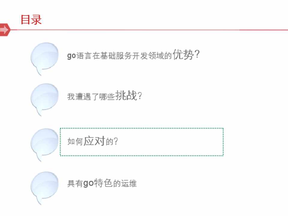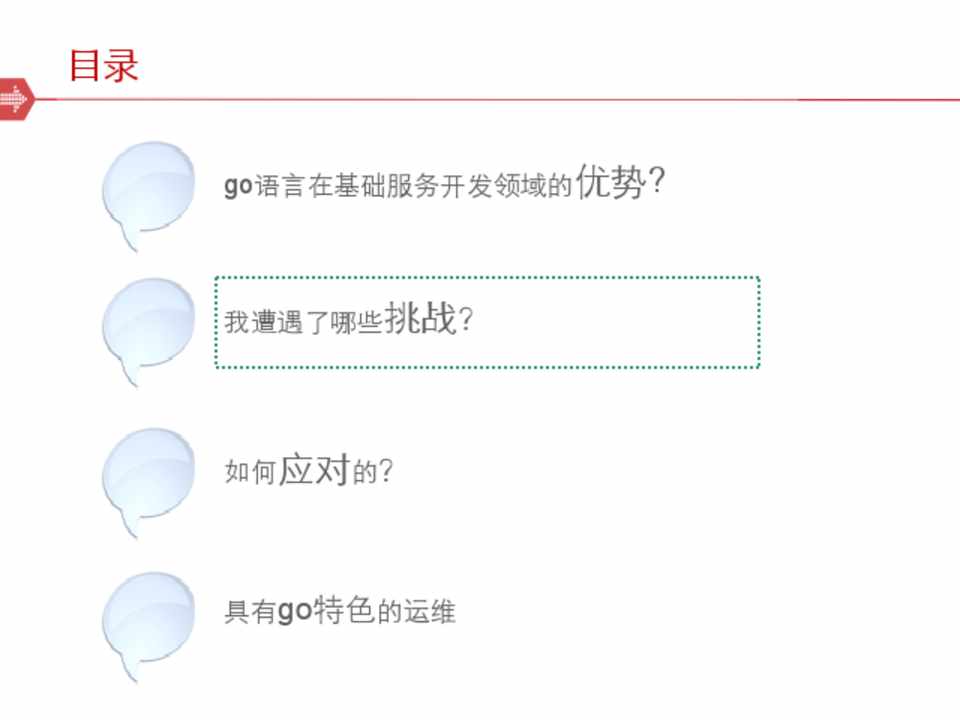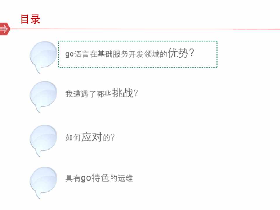 ⺫⽬目录 go语⾔言在基础服务开发领域的优势? 我遭遇了哪些挑战? 如何应对的?