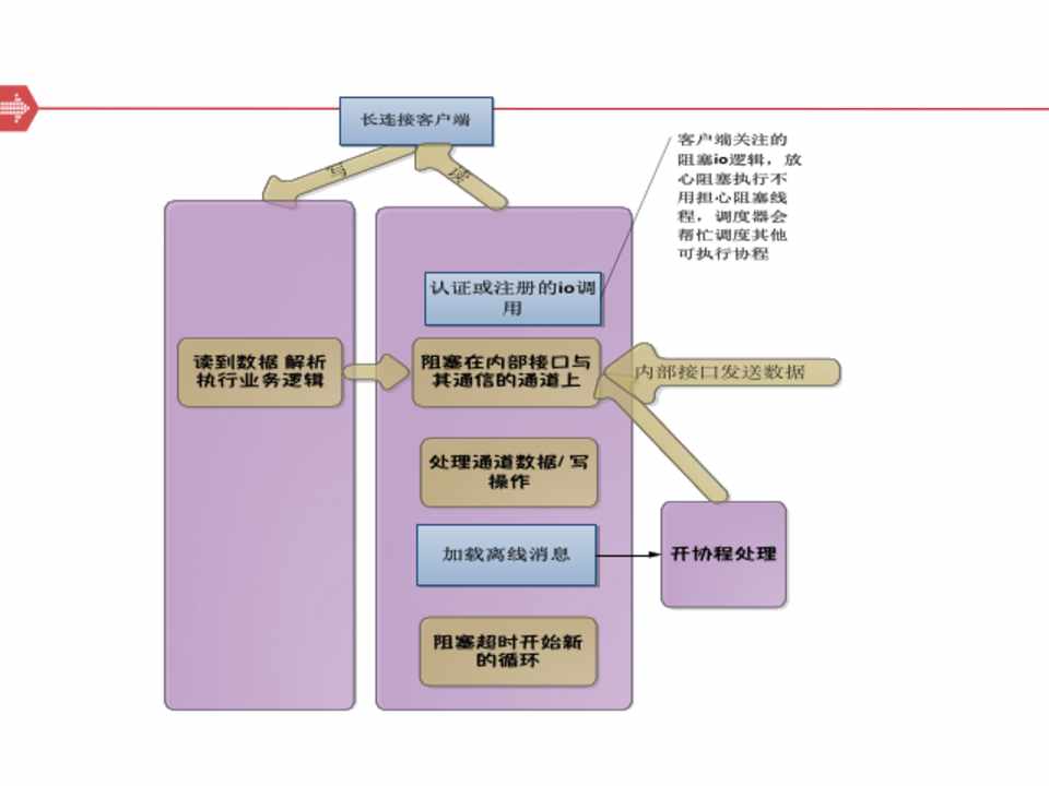 客户端关注的 阻塞io逻辑,放 心阻塞执行不 用担心阻塞线 程,调度器会 帮忙调度其他 可执行协程