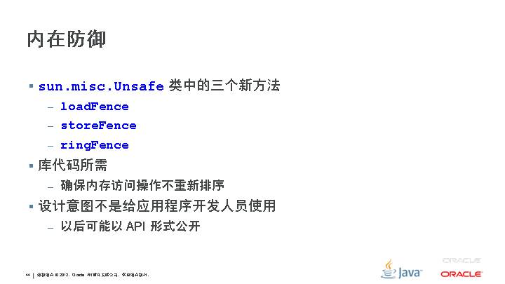 loadFence prevent reordering of load operations before this call with loads and stores after this call storeFence prevent reordering of store operations before this call with loads and stores after this call ringFence prevent reordering of all memory operations before this call with loads and stores after this call JEP 171