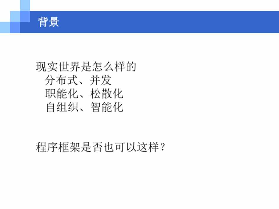 现实世界是怎么样的 分布式、并发 职能化、松散化 自组织、智能化
