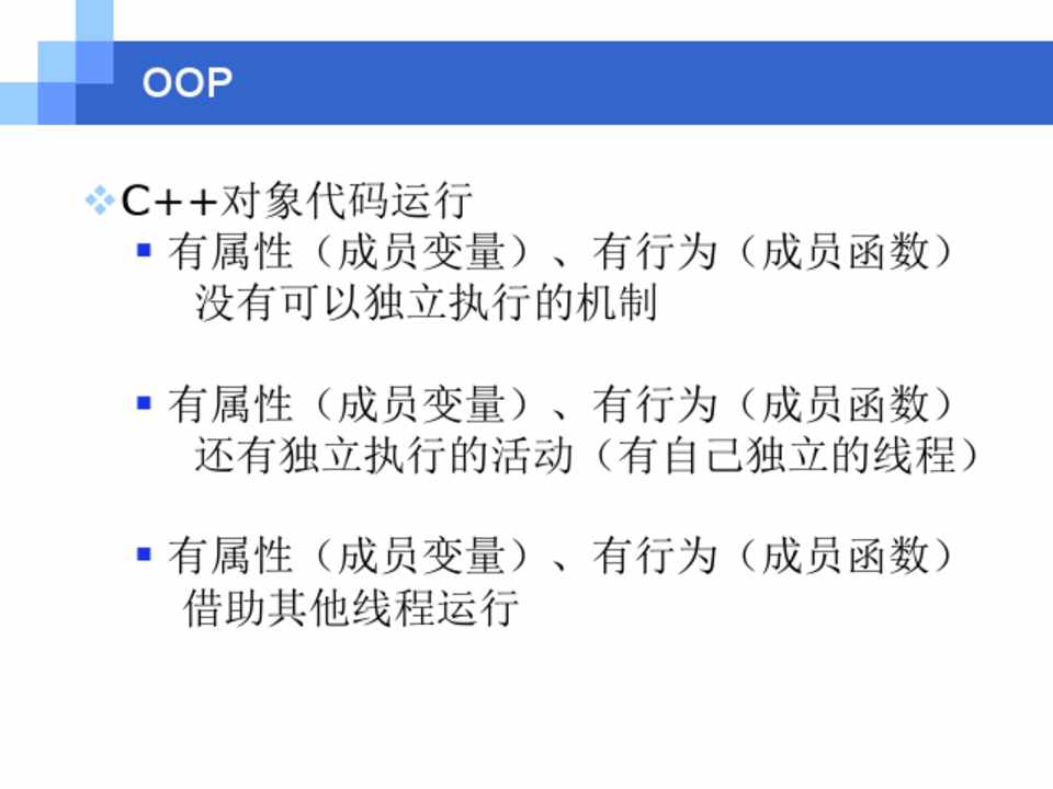 § 有属性(成员变量)、有行为(成员函数) 还有独立执行的活动(有自己独立的线程)