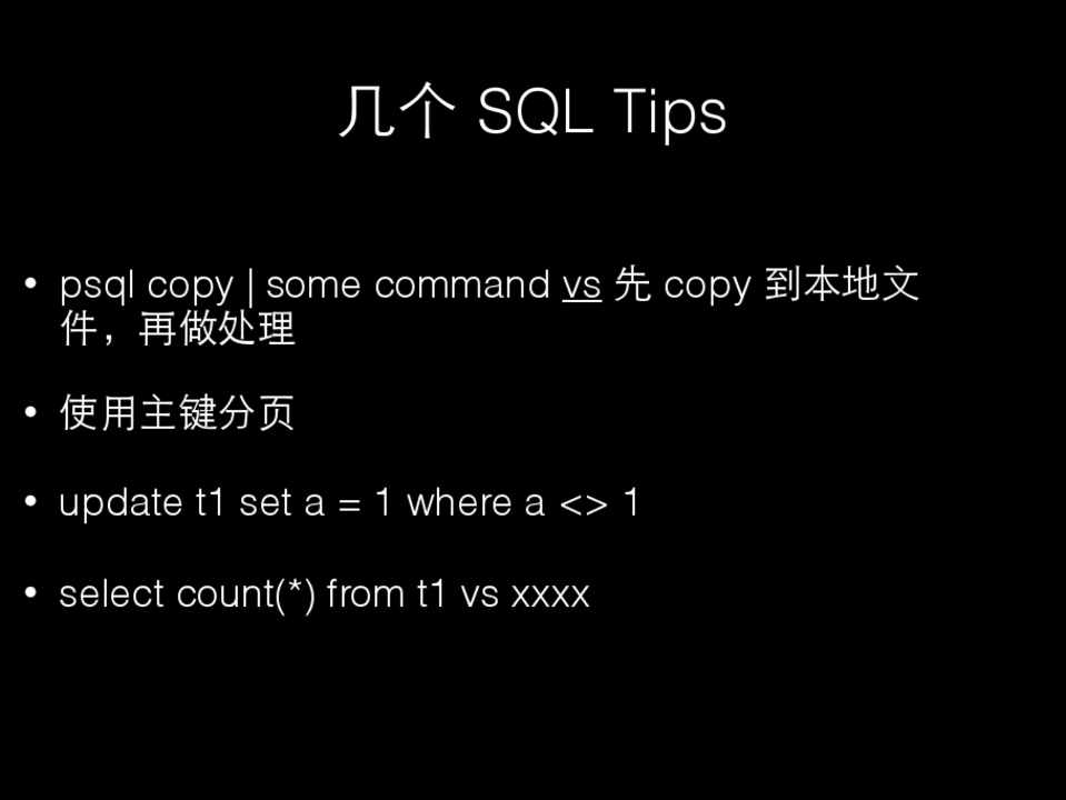 • 使⽤用主键分⻚页 • update t1 set a = 1 where a <> 1 • select count(*) from t1 vs xxxx