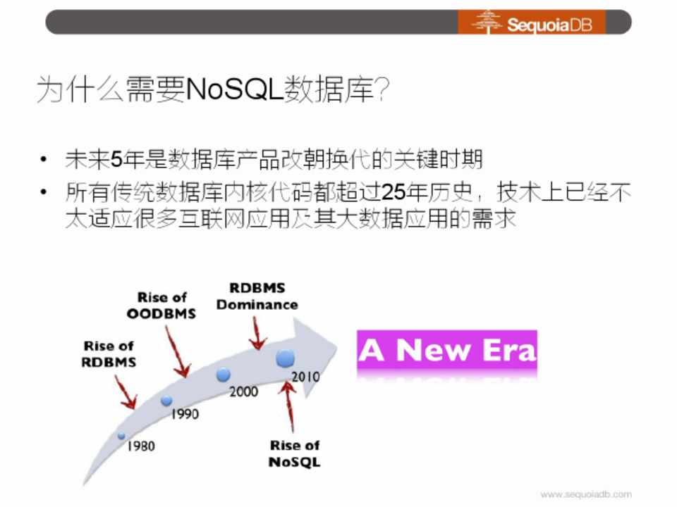 • 未来5年是数据库产品改朝换代的关键时期 • 所有传统数据库内核代码都超过25年历史,技术上已经不