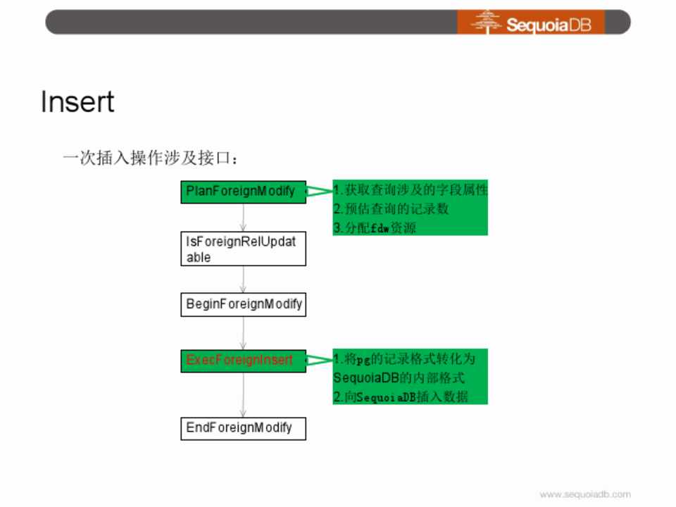 1.将pg的记录格式转化为 SequoiaDB的内部格式 2.向SequoiaDB插入数据