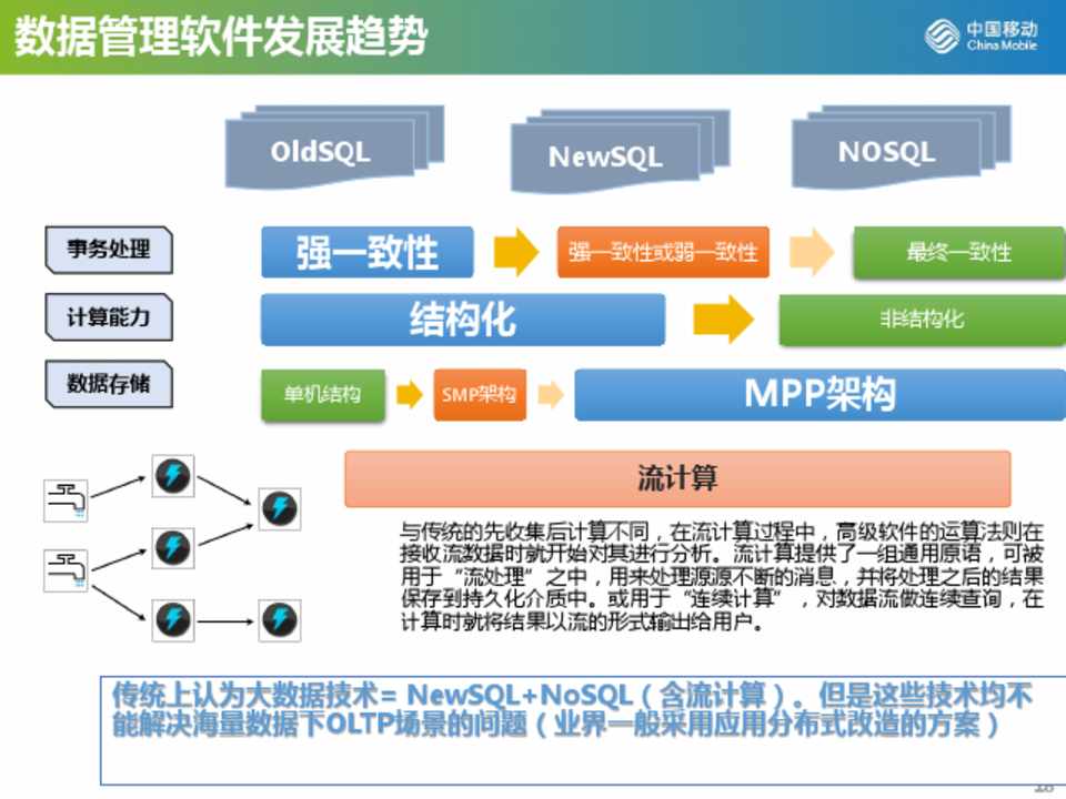 • 基于X86设备构建逻辑上仍然传统集中式数据处理,但是物理上具备水平扩展能力的高性 能资源池,解决性能问题
