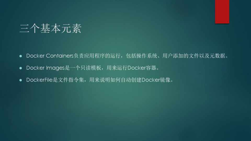 Docker Containers负责应用程序的运行,包括操作系统、用户添加的文件以及元数据。