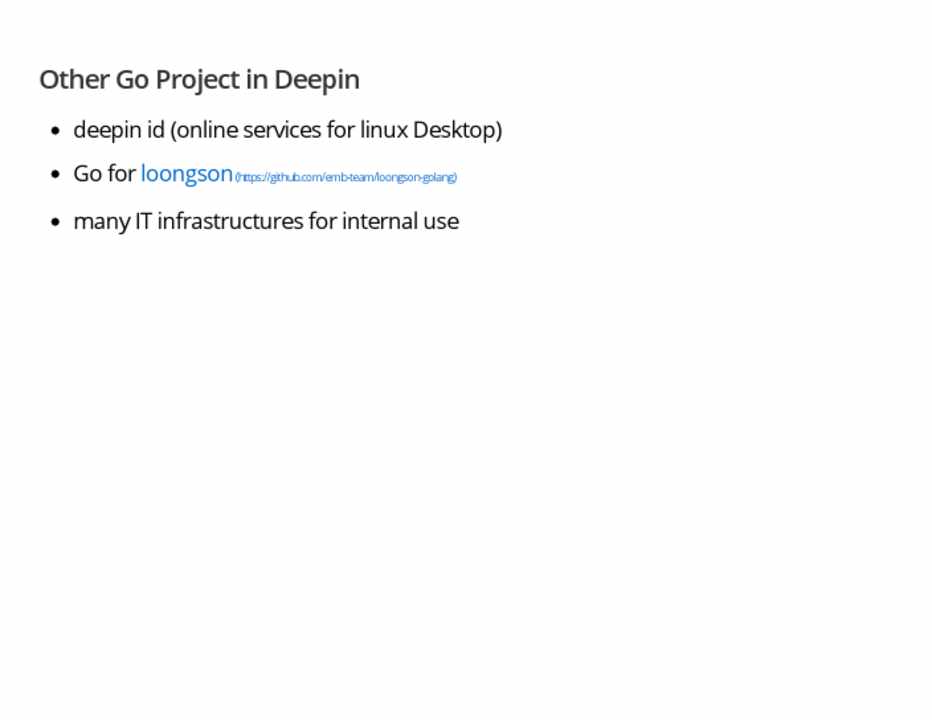 deepin id (online services for linux Desktop) Go for loongson(https://github.com/emb-team/loongson-golang) many IT infrastructures for internal use