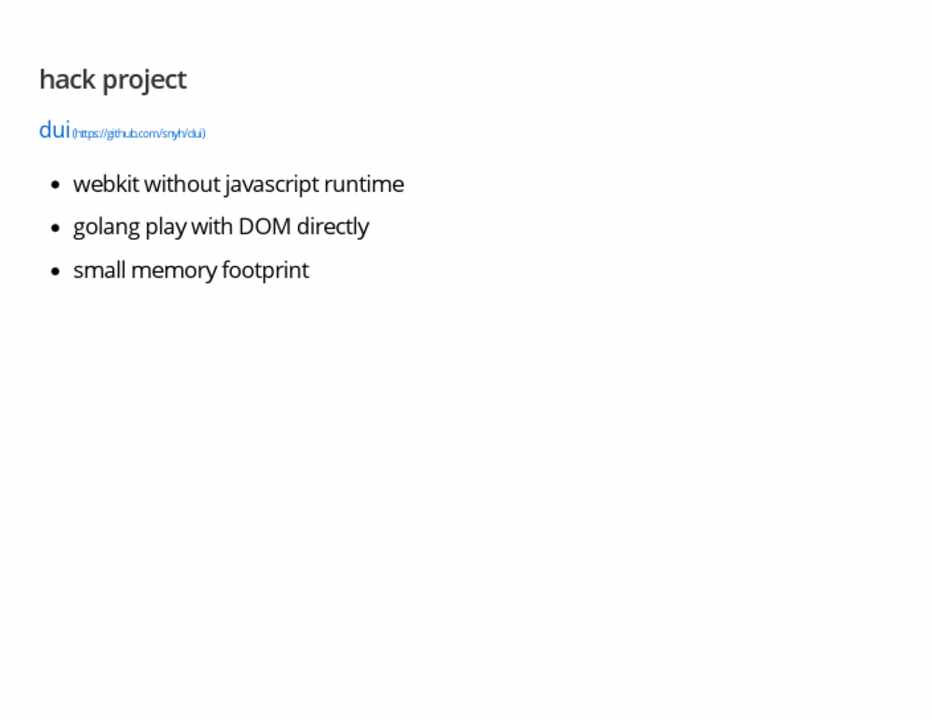 webkit without javascript runtime golang play with DOM directly small memory footprint