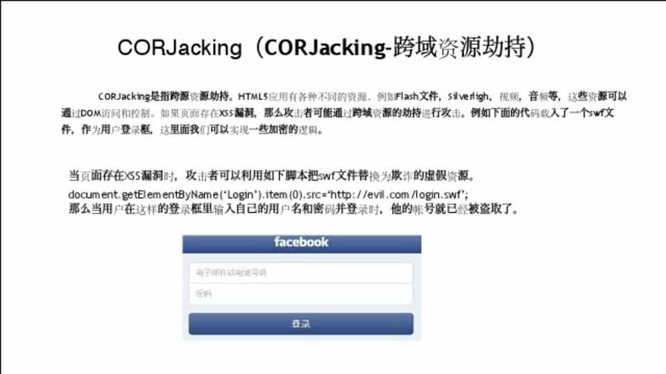 CORJacking 资 HTML5应⽤用有各种不同的资源,例如Flash