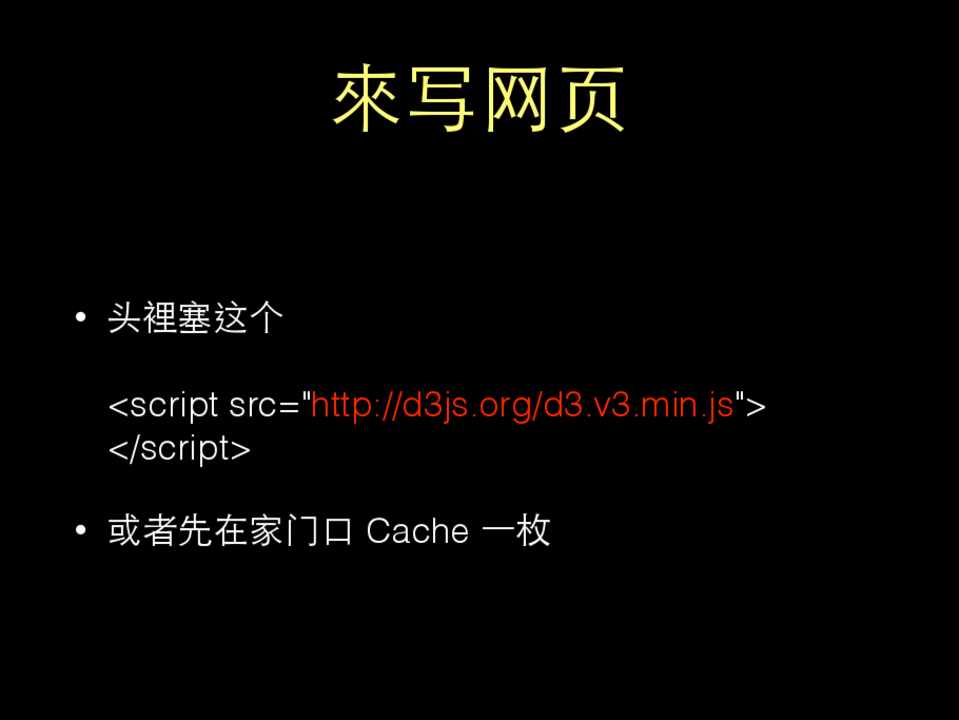 • 头裡塞这个 <script src="http://d3js.org/d3.v3.min.js"> </script>