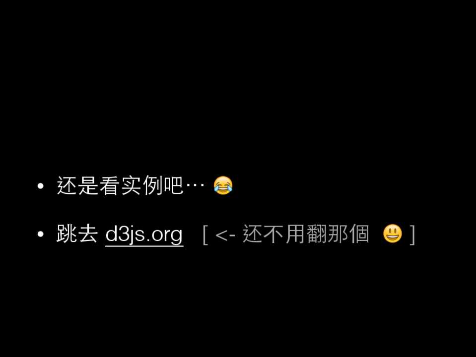 • 还是看实例吧⋯ 😂 • 跳去 d3js.org [ <- 还不⽤用翻那個 😃 ]
