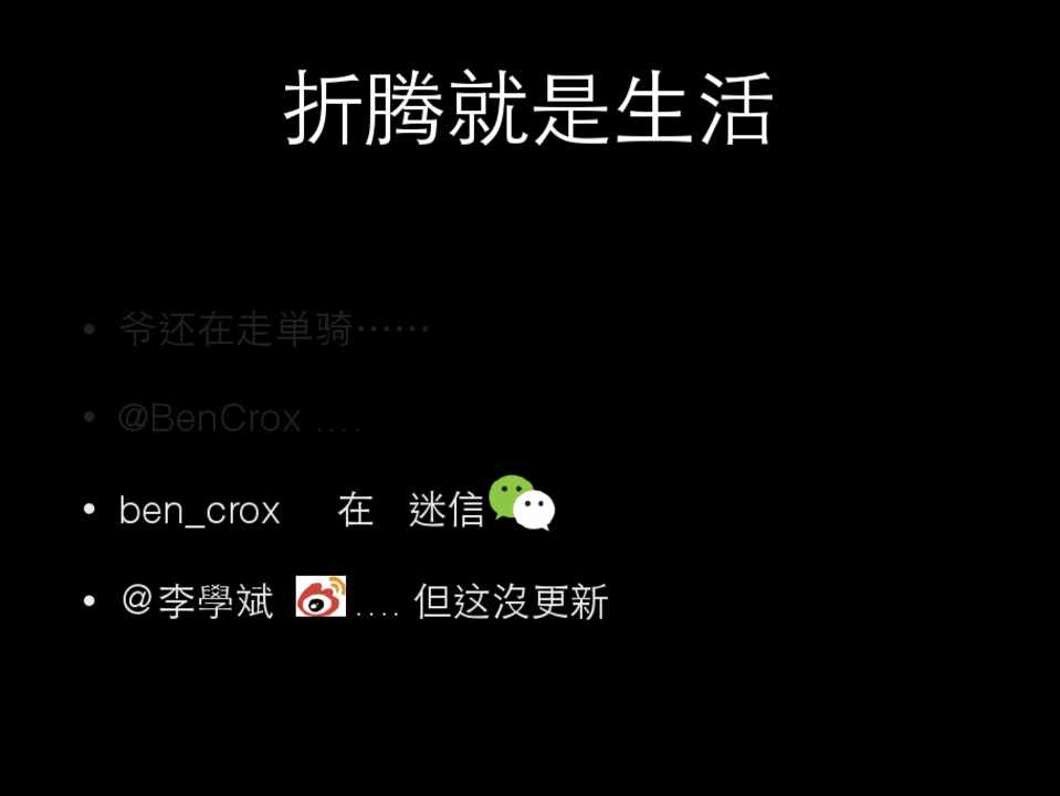 • 爷还在⾛走単骑⋯⋯ • @BenCrox …. • ben_crox 在 迷信 • @李學斌 …. 但这沒更新