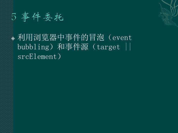利用浏览器中事件的冒泡(event bubbling)和事件源(target || srcElement)