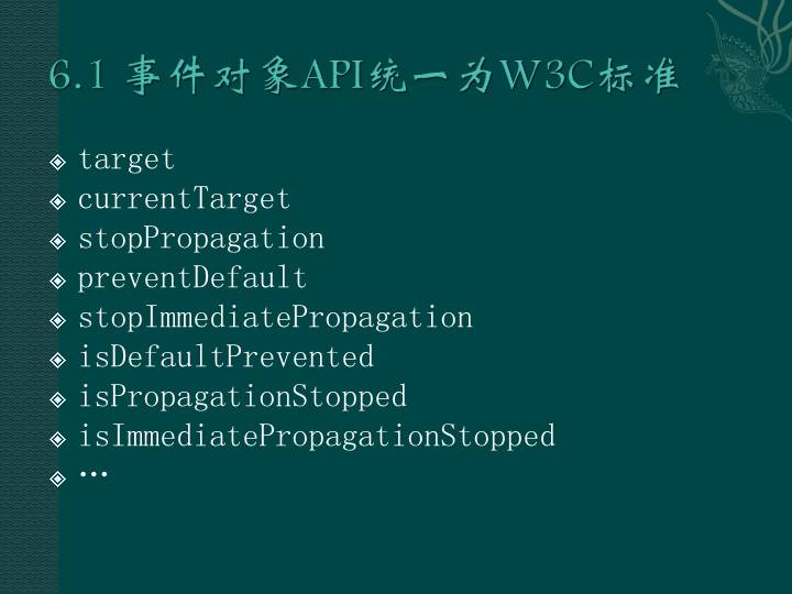 6.1 事件对象API统一为W3C标准