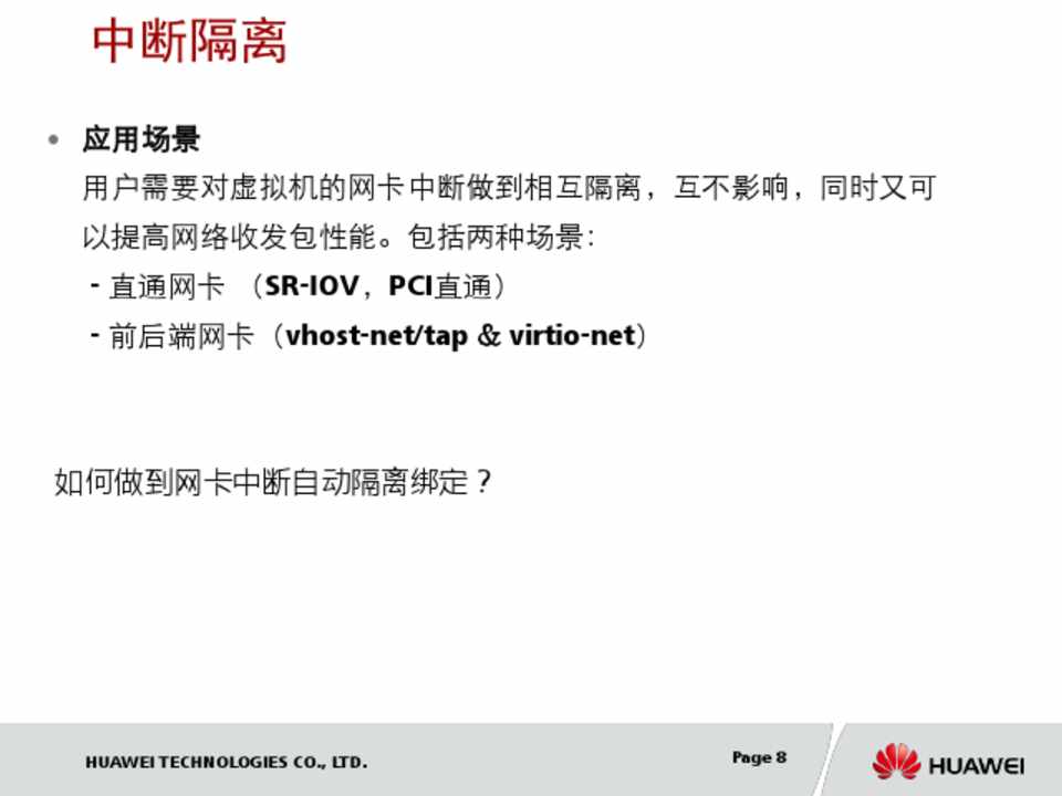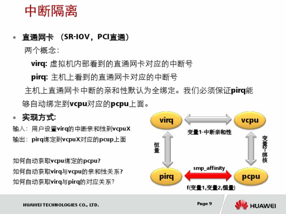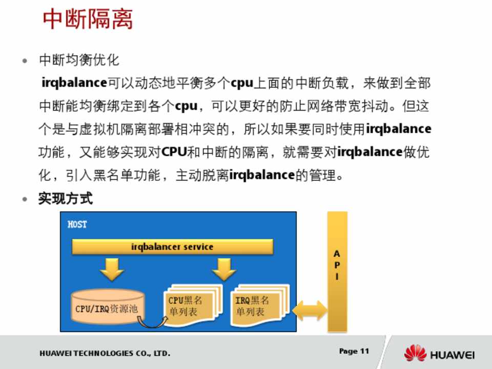 包括VCPU隔离、中断绑定、 主进程隔离、虚拟机内存预占、 Qemu内存隔离等