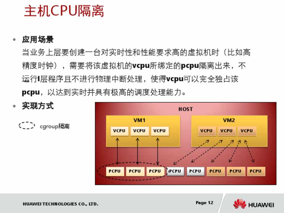 的物理CPU上调度,达到隔离VCPU并提升虚拟机性能的目的。如