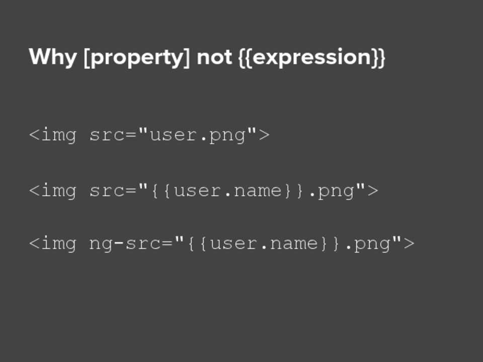 <img src="user.png"> <img src="{{user.name}}.png"> <img ng-src="{{user.name}}.png">