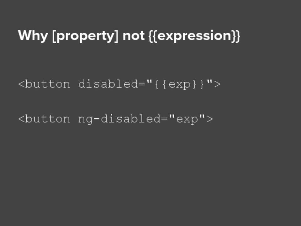 <button disabled="{{exp}}"> <button ng-disabled="exp">