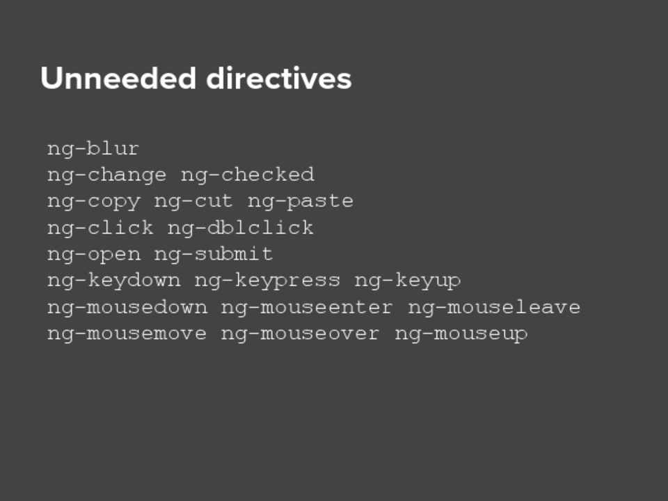 ng-blur ng-change ng-checked ng-copy ng-cut ng-paste ng-click ng-dblclick ng-open ng-submit ng-keydown ng-keypress ng-keyup ng-mousedown ng-mouseenter ng-mouseleave ng-mousemove ng-mouseover ng-mouseup