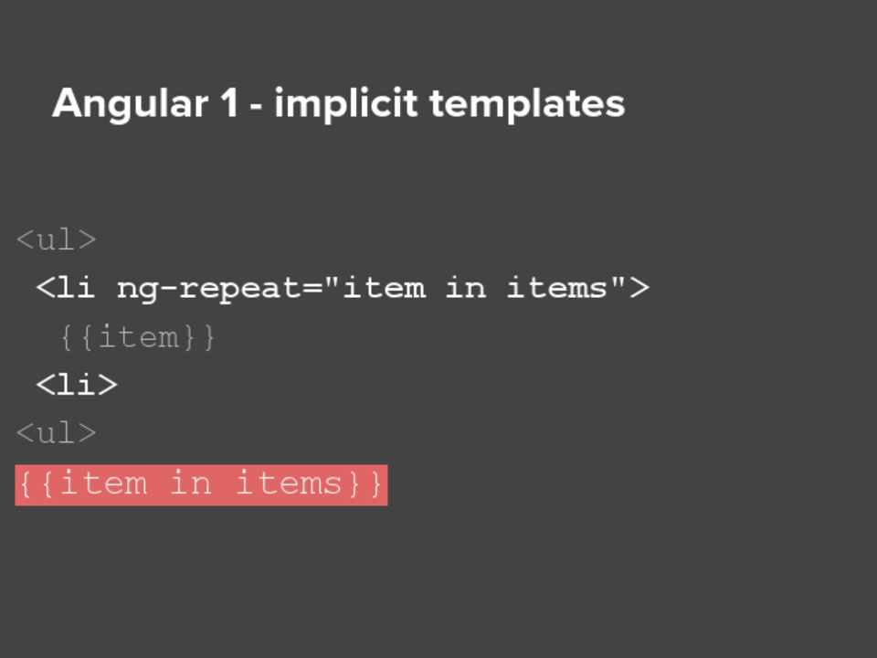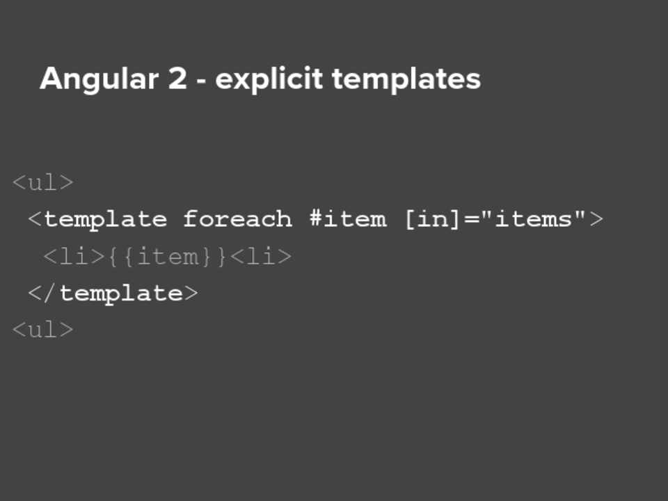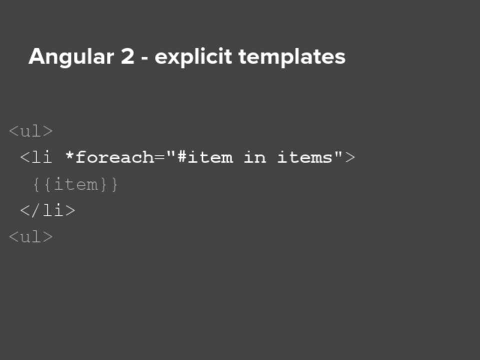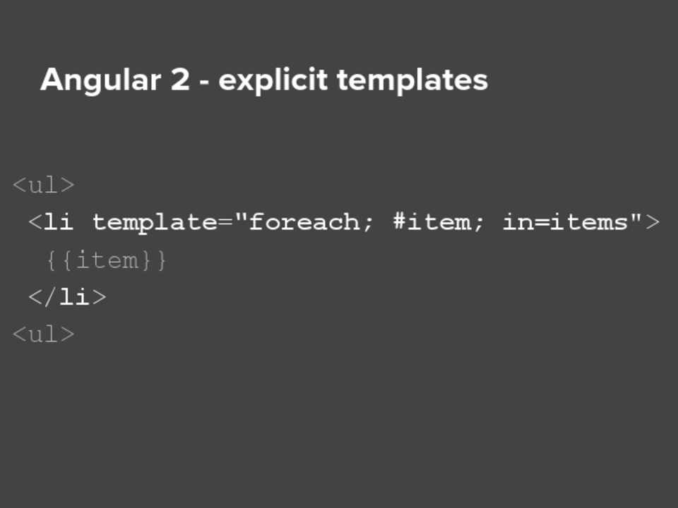 <ul> <li *foreach="#item in items"> {{item}} </li>
