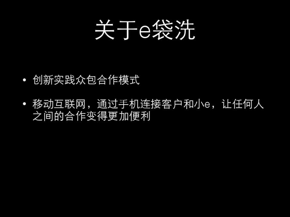• 创新实践众包合作模式 • 移动互联⺴⽹网,通过⼿手机连接客户和⼩小e,让任何⼈人