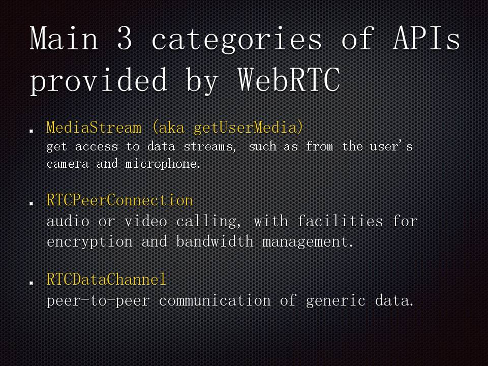 RTCPeerConnectionaudio or video calling, with facilities for encryption and bandwidth management.