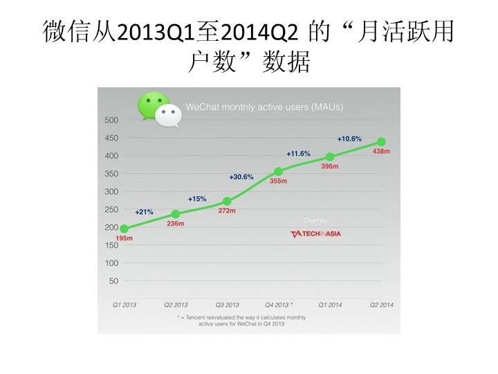 微信从2013Q1至2014Q2 的“月活跃用户数”数据