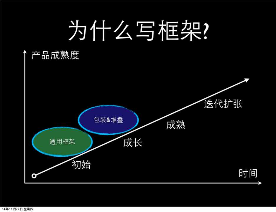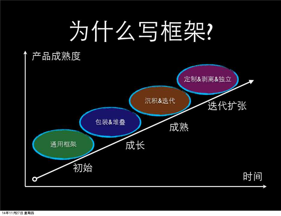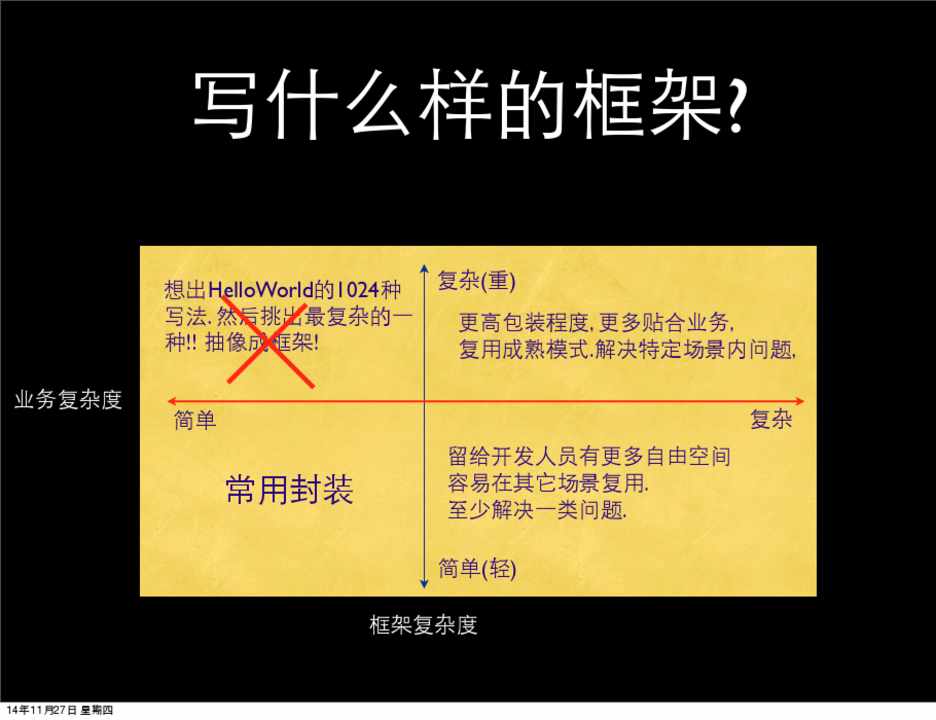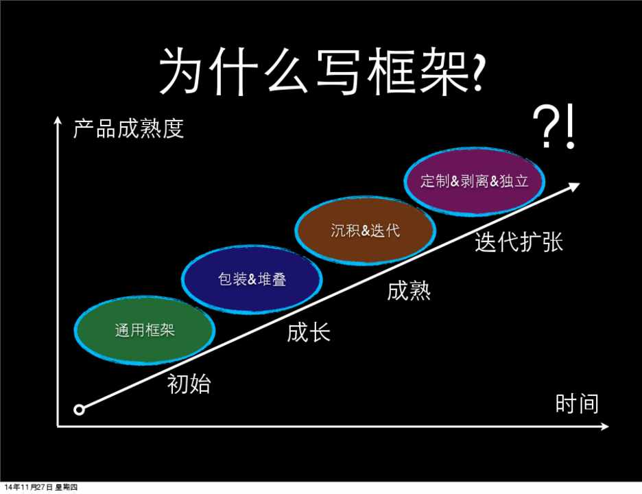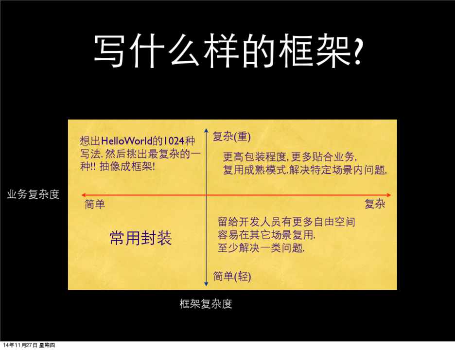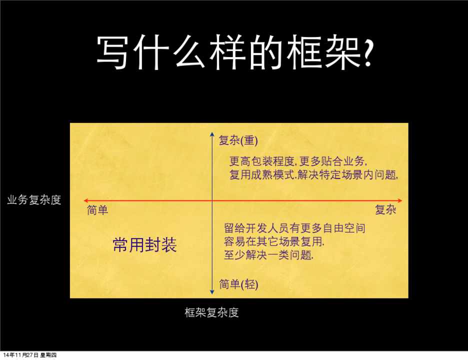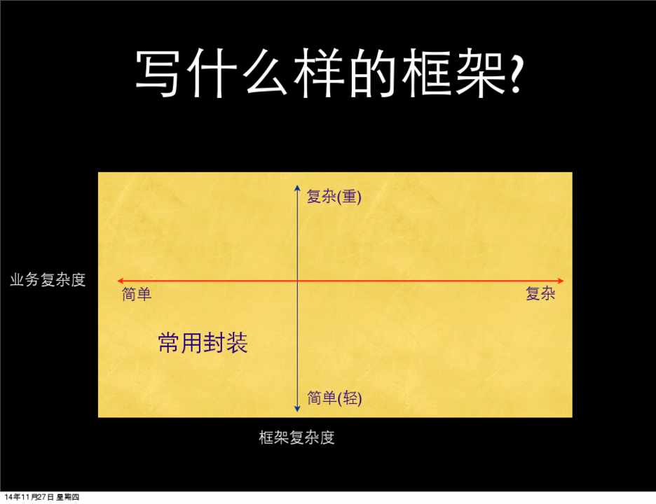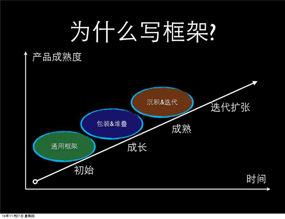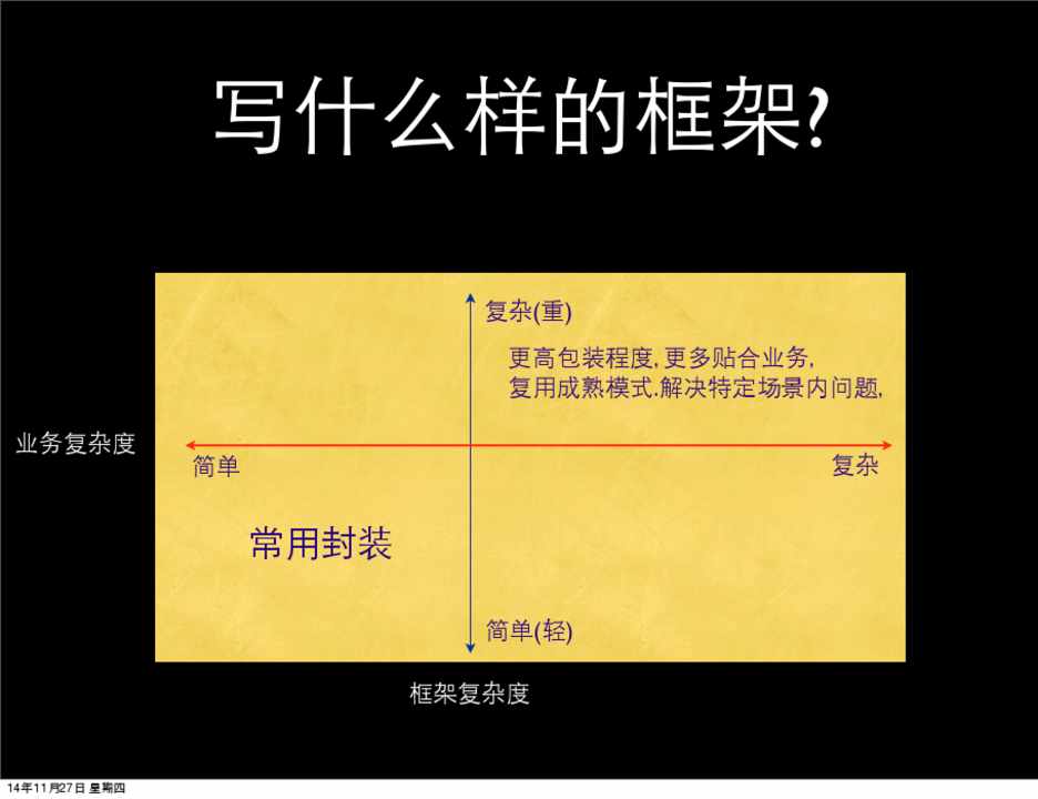 • 框架⼀一定会有,不论是否愿意. • 框架的迭代过程,就是在简单与复杂中博弈的过