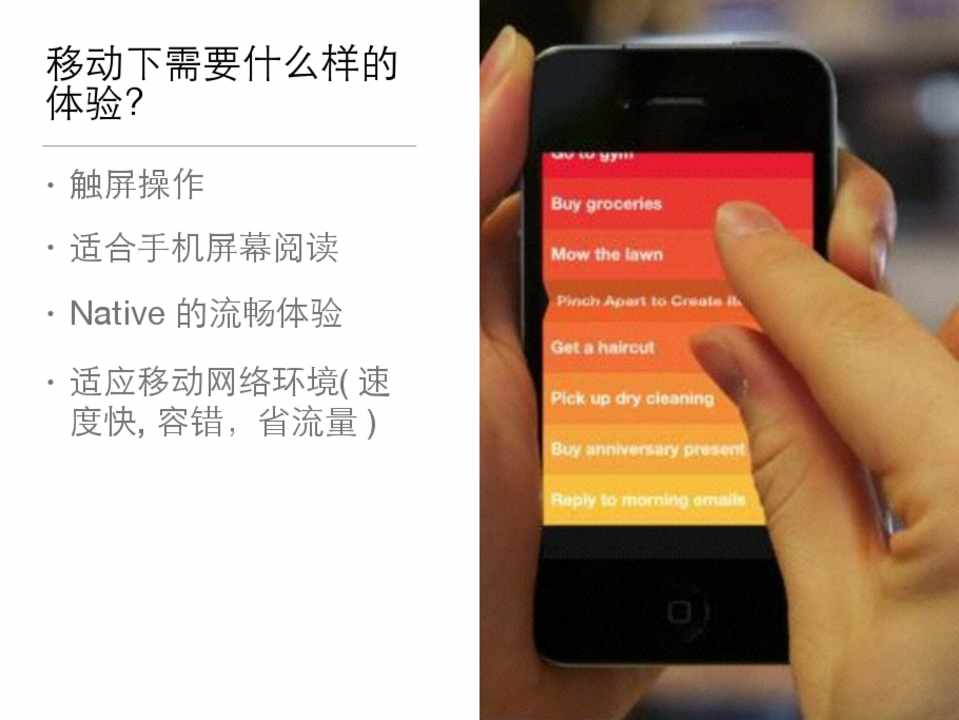 • 移动环境下的新问题 (移动 2G,3G,4G⺴⽹网络的适配, android, ios的适配)