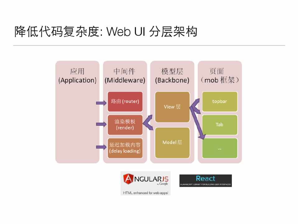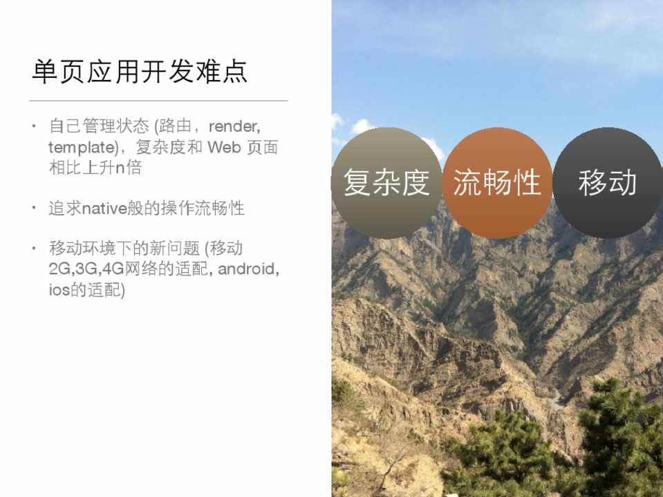 • ⾃自⼰己管理状态 (路由,render, template),复杂度和 Web ⻚页⾯面 相⽐比上升n倍