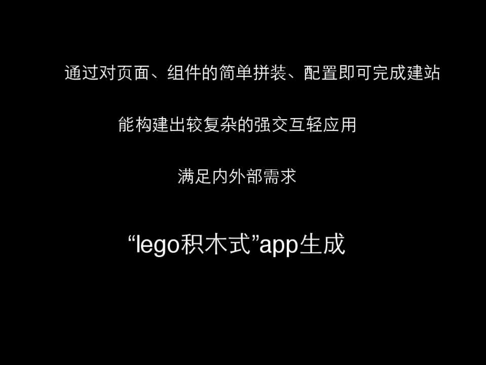 通过对⻚页⾯面、组件的简单拼装、配置即可完成建站 能构建出较复杂的强交互轻应⽤用 满⾜足内外部需求