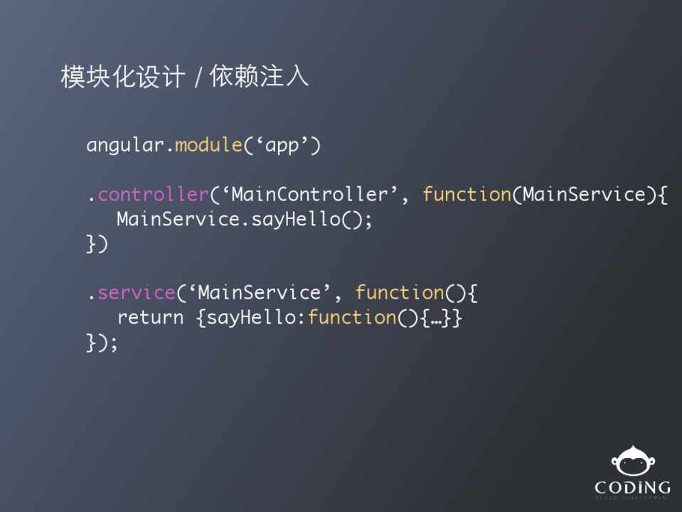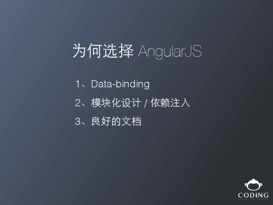 1、Data-binding 2、模块化设计 / 依赖注⼊入 3、良好的⽂文档
