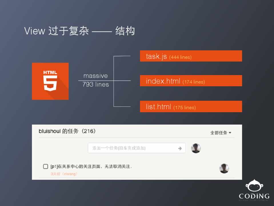 task.js (444 lines) index.html (174 lines) list.html (175 lines)