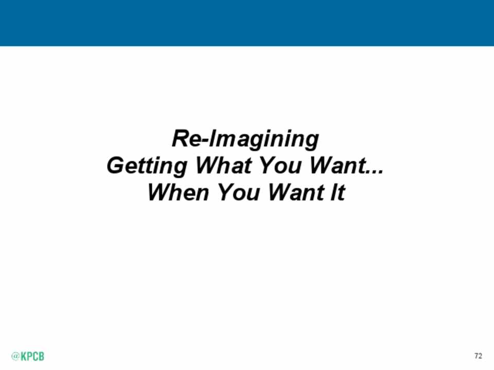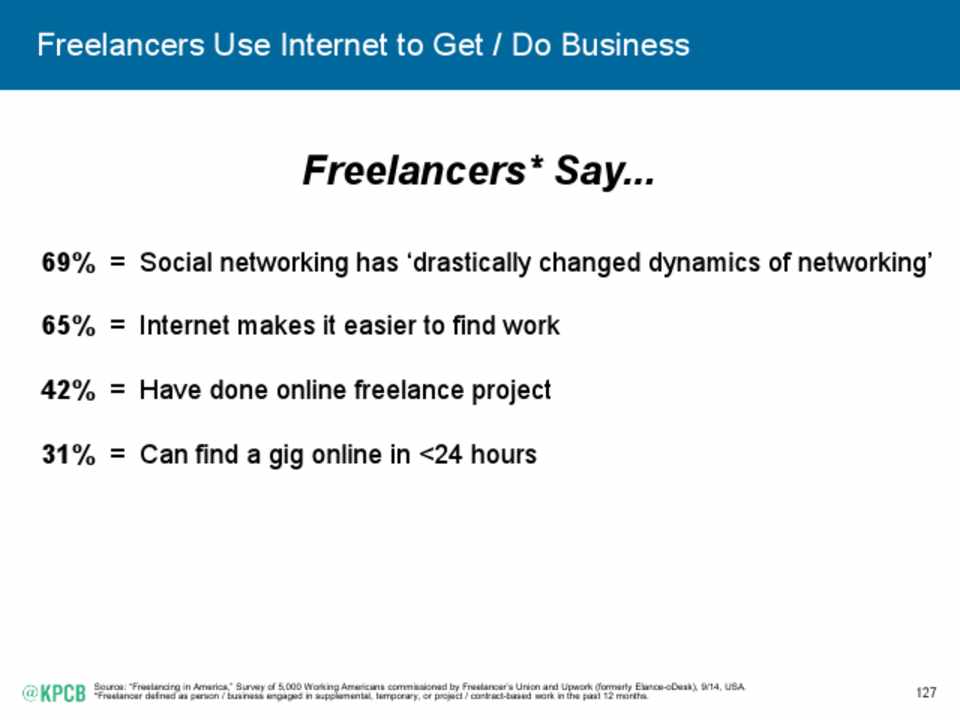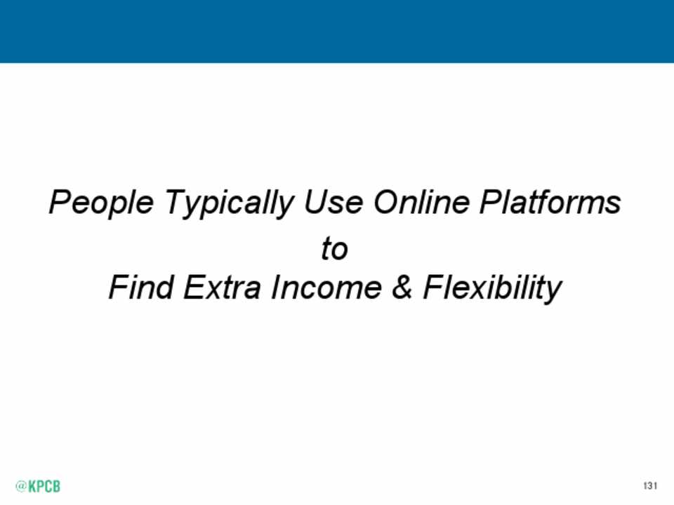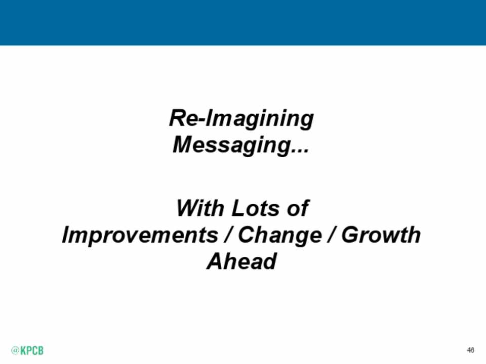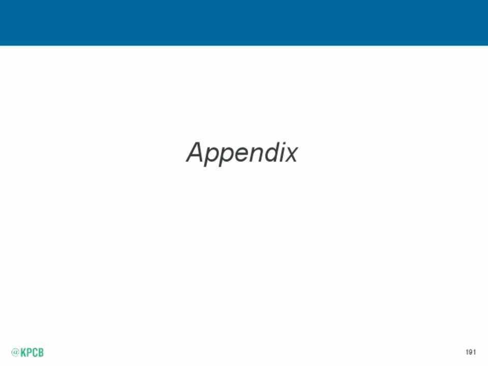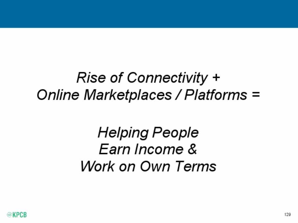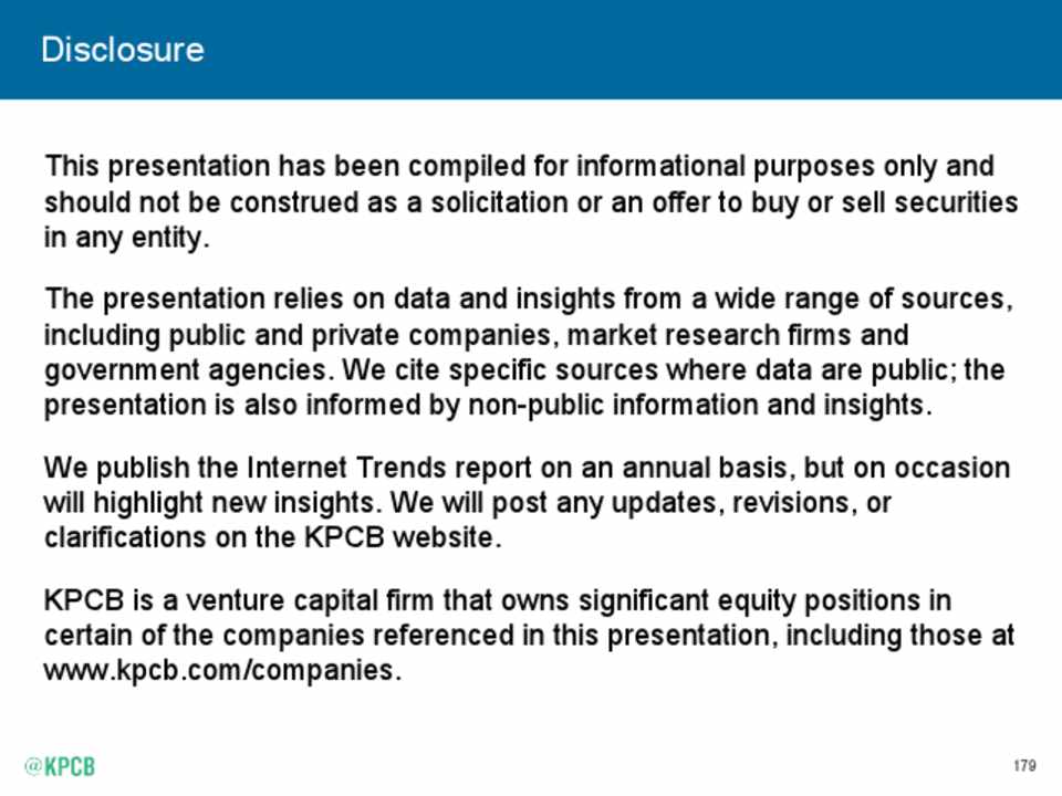 1) Internet – Two-Thirds of a Generation In... 2) Key Internet Trends 3) Re-Imagining Continues... 4) America’s Evolving Work Environment... 5) Big Internet Markets = China / India 6) Public / Private Company Data 7) One More Thing... 8) Ran Outta Time Thoughts / Appendix
