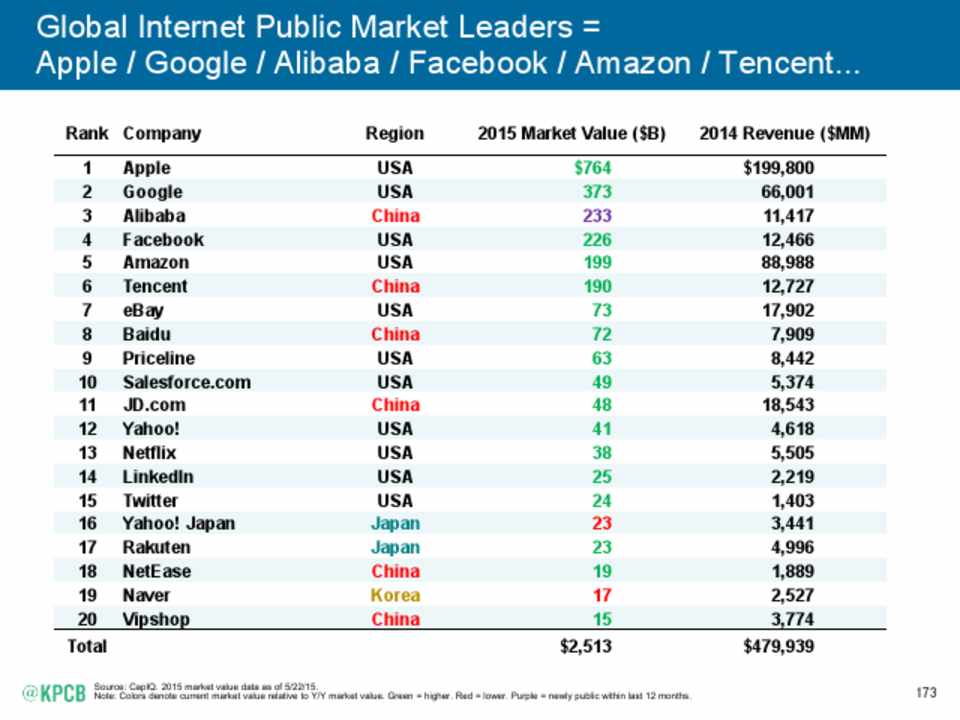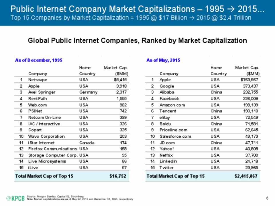 Top 15 Companies by Market Capitalization = 1995 @ $17 Billion 2015 @ $2.4 Trillion